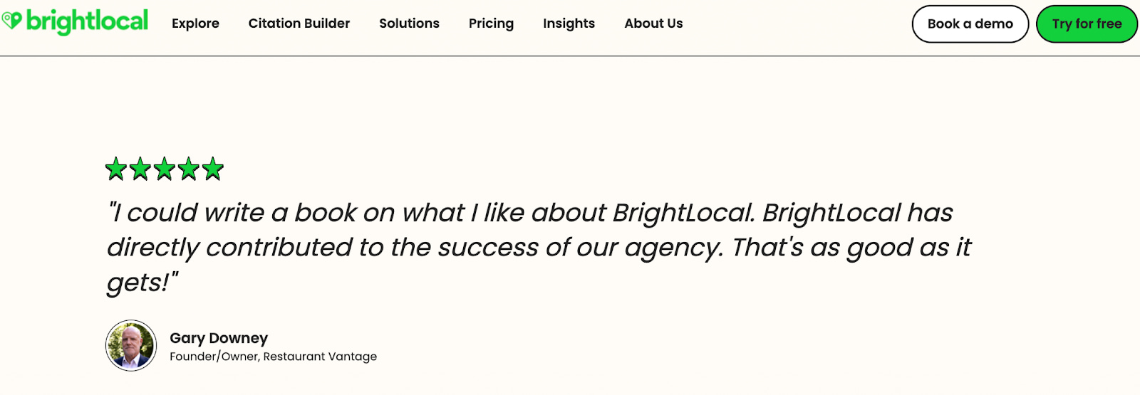 For example, BrightLocal uses user testimonials to encourage users to sign up for the platform.
