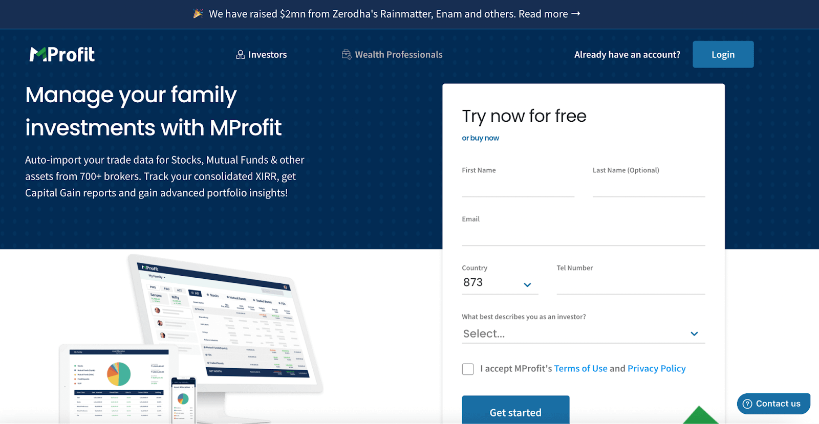 - Investment Management Solutions: The landing page promotes MProfit’s services for managing family investments. It caters to a common need among investors and provides a solution to streamline investment management.