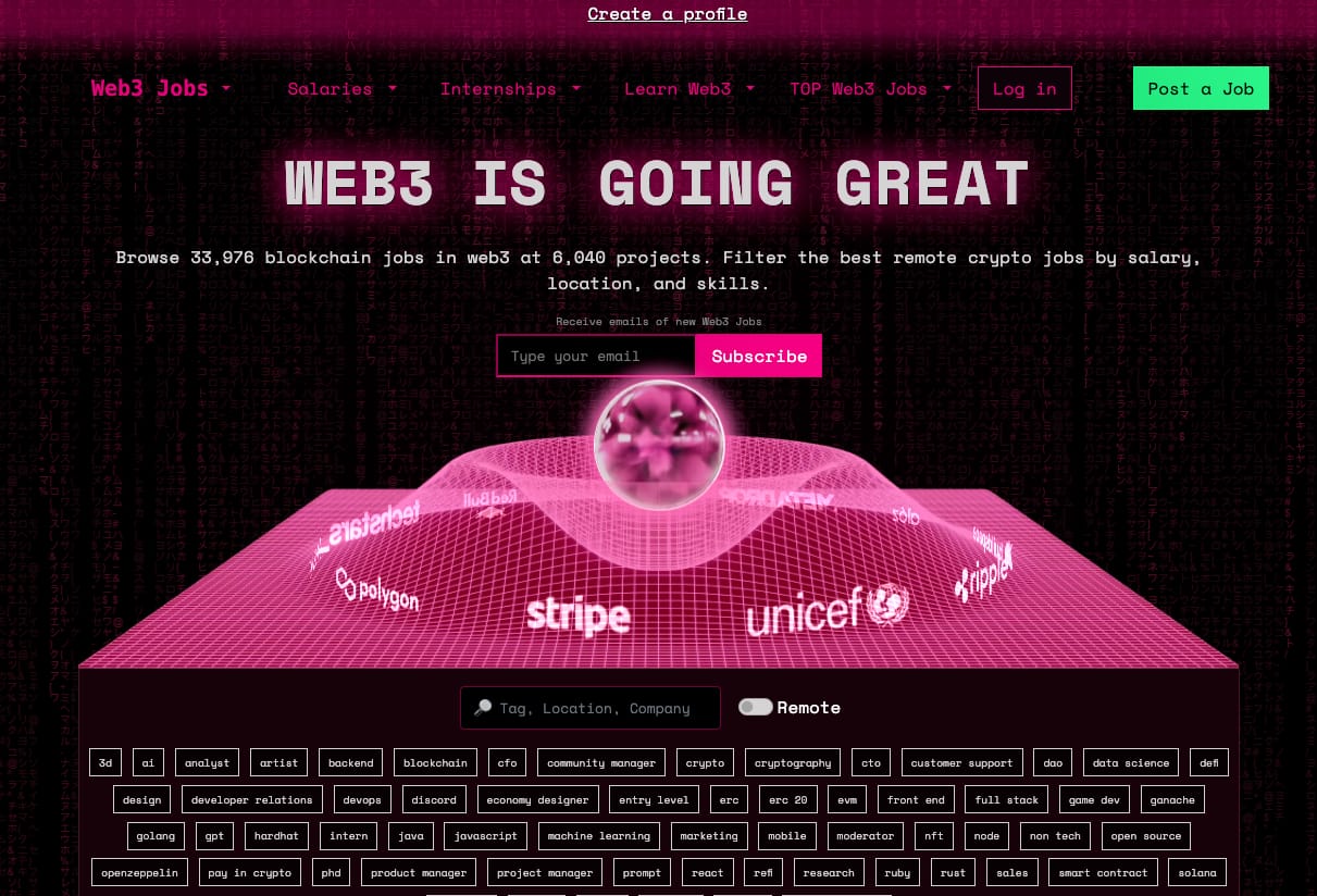 A notable entrant, Web3 Jobs has emerged as a frontrunner in the Web3 industry’s employment landscape. With a substantial pool of over 32,000 job listings across 5,700 diverse projects, it’s a platform resonating with well-known entities including Stripe, Uniswap, and Techstars.