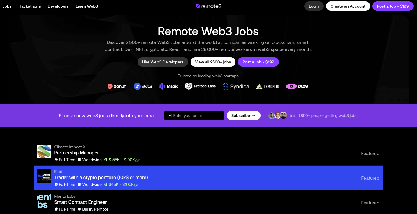 Enter RemoteOK, a platform that prides itself as a global leader in remote job opportunities. While not exclusively focused on Web3, its Web3-specific section showcases over 200 positions from industry leaders like Kraken and Rarible. With an extensive user base and notable partnerships, this platform is particularly appealing for those seeking remote roles in the crypto landscape. The cost of posting ranges from $99 to approximately $2040, ensuring flexibility for diverse budgets.