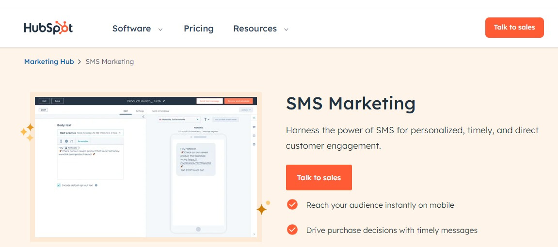 - HubSpot’s SMS Marketing tool is suitable for businesses of all sizes, offering scalability to accommodate growing marketing needs.
