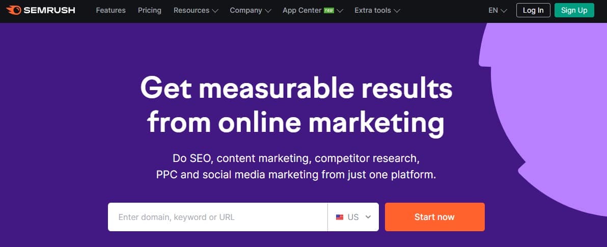 SEMrush is an all-encompassing marketing analytics powerhouse, catering to the diverse needs of marketers by offering a collection of tools for SEO, content marketing, competitor research, advertising, and social media.