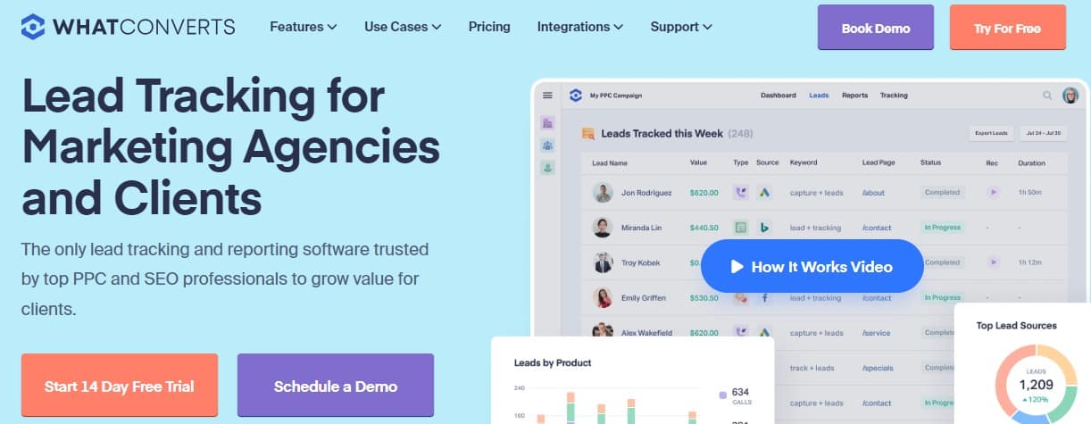 WhatConverts is a robust lead-tracking and reporting software designed to empower marketers by providing comprehensive insights into their marketing efforts.