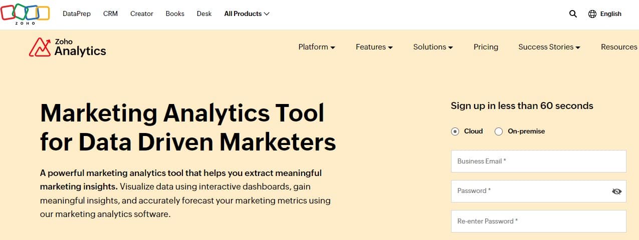 Zoho Analytics is a potent marketing analytics tool designed to empower marketers by extracting meaningful insights from their marketing data.