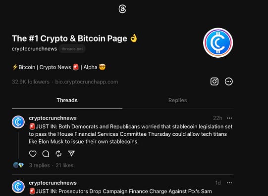 CryptoCrunch News, operating as the Threads account of a widely acclaimed crypto news portal, has built its reputation on swift and precise reporting of the most recent developments within the industry. Headquartered in India, this platform has garnered a substantial global following by delivering a seamless blend of news, analysis, insights, and market predictions.