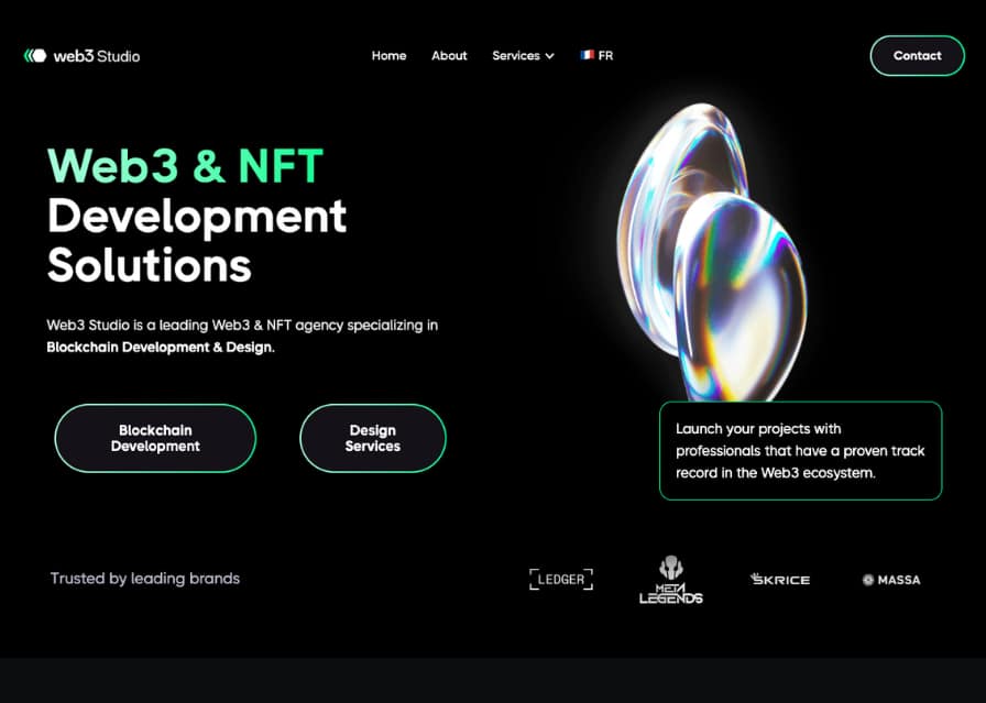 Web3 Studio specializes in building visually stunning and user-friendly designs for Web3 startups, NFT projects, and blockchain businesses. Their team focuses on creating high-performing interfaces that ensure seamless blockchain interactions.